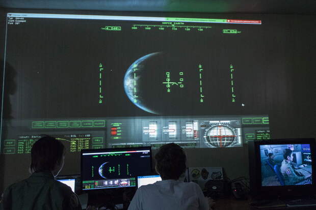 Комната, играющая роль "корабля". Отсюда управляют виртуально летящим к Луне аппаратом.