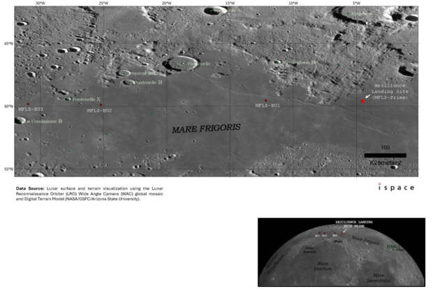 Посадка HAKUTO-R M2 ожидается в лунное Море Холода в северном полушарии.