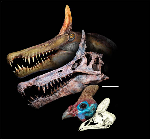Источник: Paul C. Sereno, Daniel Vidal, Nathan P. Myhrvold, Evan Johnson-Ransom, María Ciudad Real, Stephanie L. Baumgart, Noelia Sánchez Fontela, Todd L. Green, Evan T. Saitta, Boubй Adamou, Lauren L. Bop, Tyler M. Keillor, Erin C. Fitzgerald, Didier B. Dutheil, Robert A. S. Laroche, Alexandre V. Demers-Potvin, Álvaro Simarro, Francesc Gascó-Lluna, Ana Lázaro, Arturo Gamonal, Charles V. Beightol, Vincent Reneleau, Rachel Vautrin, Filippo Bertozzo, Alejandro Granados, Grace Kinney-Broderick, Jordan C. Mallon, Rafael M. Lindoso, and Jahandar Ramezani. Scimitar-crested Spinosaurus species from the Sahara caps stepwise spinosaurid radiation // Science. 19 Feb 2026. V. 391. Issue 6787. DOI: 10.1126/science.adx5486.