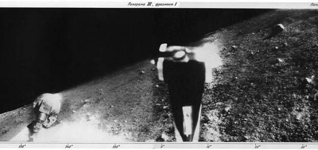 Аппарат немного наклонился в одну сторону, что позволило ему наблюдать своей фотокамерой с одной стороны близкую поверхность Луны, а с другой — её дальний горизонт.