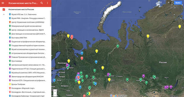 Дополнительно к «Путеводителю» прилагается онлайн-карта космических мест России. Здесь объектов указано гораздо больше, хотя список по-прежнему не исчерпывающий. Карта периодически пополняется и расширяется по предложениям читателей.