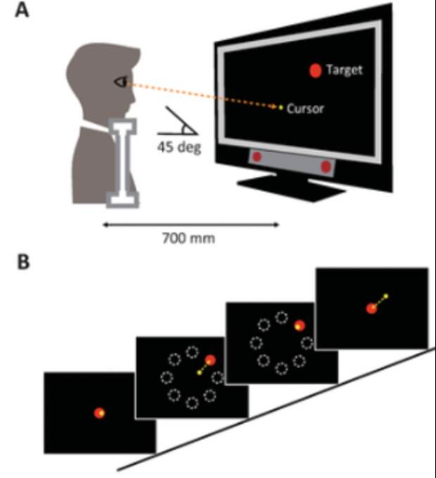 Для того, чтобы проверить эту гипотезу, провели такой эксперимент: здоровых людей просили перемещать взгляд от центра к какой-то цели на периферии в трех различных ситуациях: во время разговора, при прослушиванииаудиозаписи или без отвлекающих факторов.